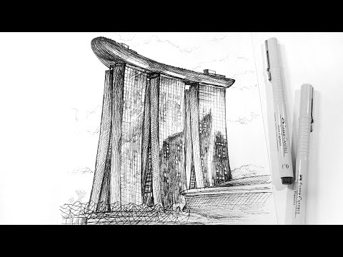 Marina Bay Sands, Singapore (Vertical Video) - pen drawing sounds ASMR - Singapore Marina Bay Sands Drawing